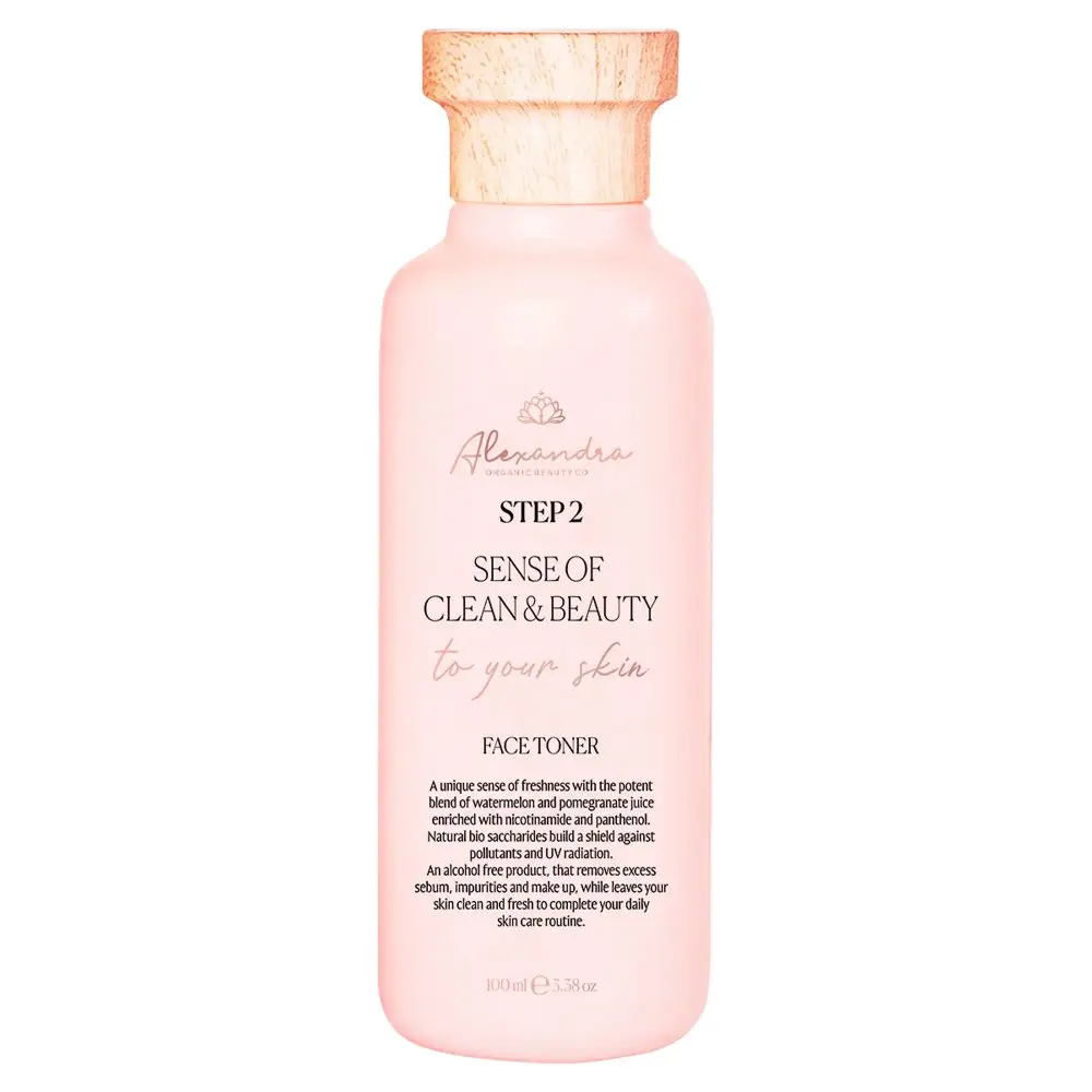 Gently remove any excess makeup, sebum, and impurities from your skin with the Alexandra Organic Face Toner. The Alexandra Organic Face Toner is a natural facial toner that harnesses the power of watermelon and pomegranate juice enriched with niacinamide and panthenol that give your skin a unique sense of freshness and hydration. It is also formulated with natural bio saccharides that form a protective shield on your skin to protect it from pollutants, free radical damage, and harmful UV radiation. This alcohol-free facial toner works overtime to remove excess sebum, impurities, and makeup while leaving your skin clean, fresh, clean, and well-hydrated.