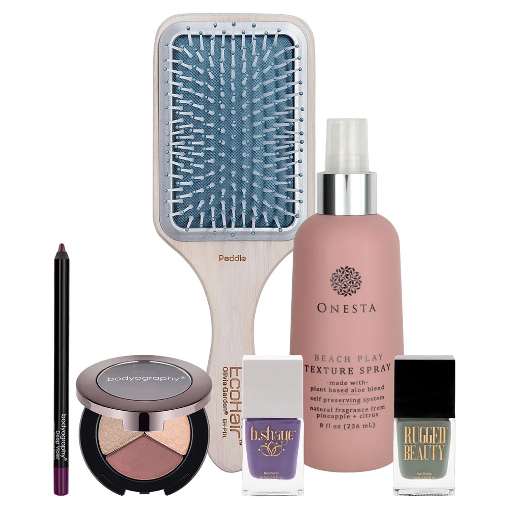 Kit Includes: Rugged Beauty b.shaye Nail Polish – Peace Of Mind: Power Color Rugged Beauty Nail Polish – Chillax: Power Color Olivia Garden EcoHair Bamboo Brush – Paddle: This brush is Eco friendly, Pisces are known to be very friendly. Bodyography Expressions Trio Eye Shadow – Blue Eyes (Mauve, Taupe, Pink Champagne): Power Color Bodyography Eye Pencil – Deep Violet: Power Color, would pair perfectly with the Blue Eyes Trio Onesta Beach Play Texture Spray: Pisces is ruled by Neptune, the Onesta Beach Play Texture Spray is formulated with Neptune Algae to reduce stress on hair while giving it the best moisture!