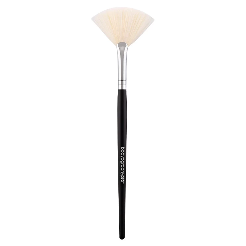 Used to sweep on a glowing highlight or to fan away excess product. Highlight the top of cheekbones or other high points of the face where you want the light to reflect. Use the fanned-out bristles to remove any shadow fallout without disturbing the rest of your makeup look.