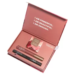 Keep it merry and bright this holiday season with the Chella Holiday Gift Box Set. Featuring your three must-have Chella products in a beautiful reusable box. This amazing set contains the Chella Mascara in black, the heated eyelash curler, and your choice of either the La Vie Travel eyeshadow palette or the Manifest Bronze eyeshadow palette. This perfect combo gives you the gift of perfectly coated lashes and stunning eyes so you can sleigh this holiday season.