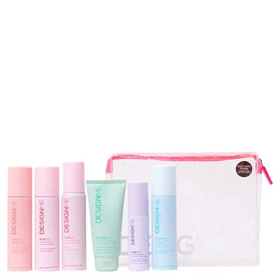 The Design Me Lit with Littles Dark Travel Set features a hairspray, texture spray, mousse, mask, treatment, and dry shampoo to help you mold and create stunning and healthy styles this holiday season.
