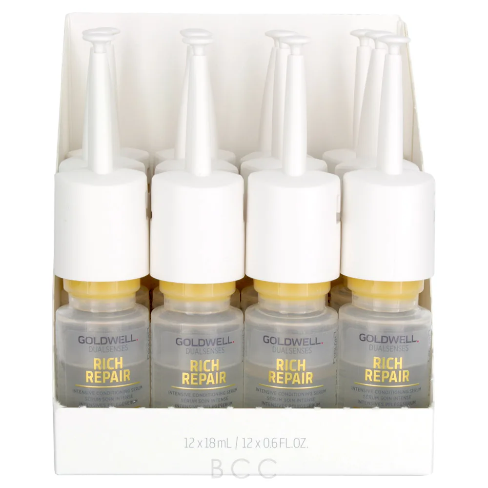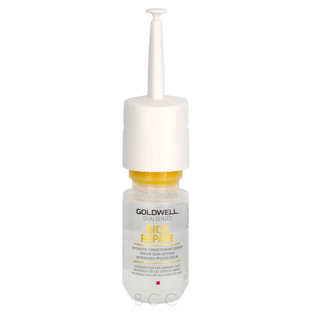 This Leave-In Serum regenerates hair intensively in seconds. The Regenerative IntraLipid Complex with Pashmina Silk Protein work to provide ultimate shine and repair dry and damaged hair instantly. IntraLipid Complex helps to repair hair from the inside, with this treatment lipids are replaced effectively and deeply for intensive regeneration of the inner hair structure. With continued use of the Goldwell Dualsenses Rich Repair Intensive Conditioning Serum, you will experience up to 95% less breakage while nourishing and hydrating each hair strand from the inside out.