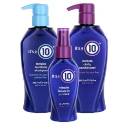 With scent notes of hibiscus and sunflower seed extract, the It’s A 10 Miracle Moisture Shampoo, Conditioner & Leave-In Trio will have you thinking you spent your morning in the spa!