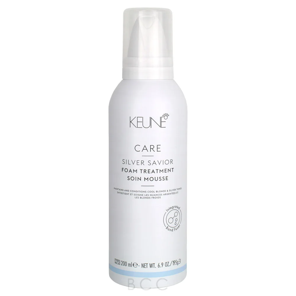 Keep your blonde hair beautiful and icy with the Keune Care Silver Savior Foam Treatment. This leave-in conditioning mousse is packed with super strong violet pigments to neutralize unwanted warm tones. Formulated with provitamin B5 to keep hair looking and feeling silky soft. The mousse also features Keune’s Bond Fuser technology.