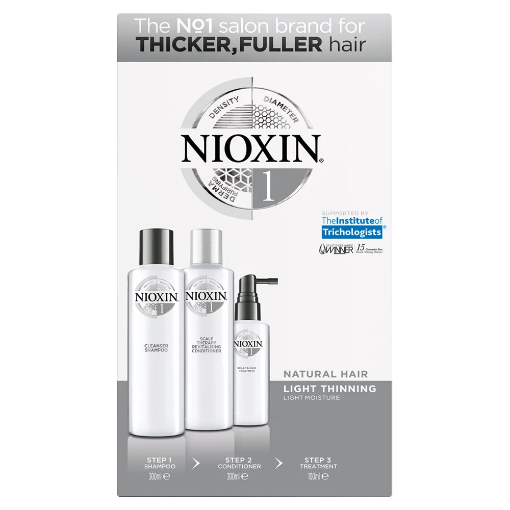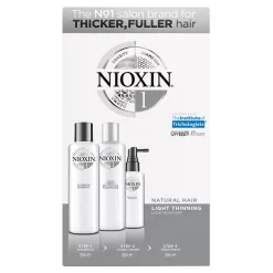 The NIOXIN System 1 Kit is specially formulated to amplify hair texture while protecting against breakage by refreshing the scalp and removing follicle-clogging sebums, along with environmental residues. The volumizing Nioxin 3-part System 1 regimen reduces hair loss due to breakage and strengthens the hair while refreshing the scalp and delivering a healthy shine to natural hair with light thinning. This kit works to refresh the hair and scalp while increasing hair’s natural volume and protecting hair from damage.