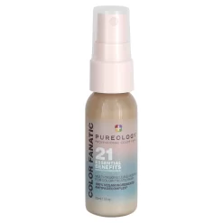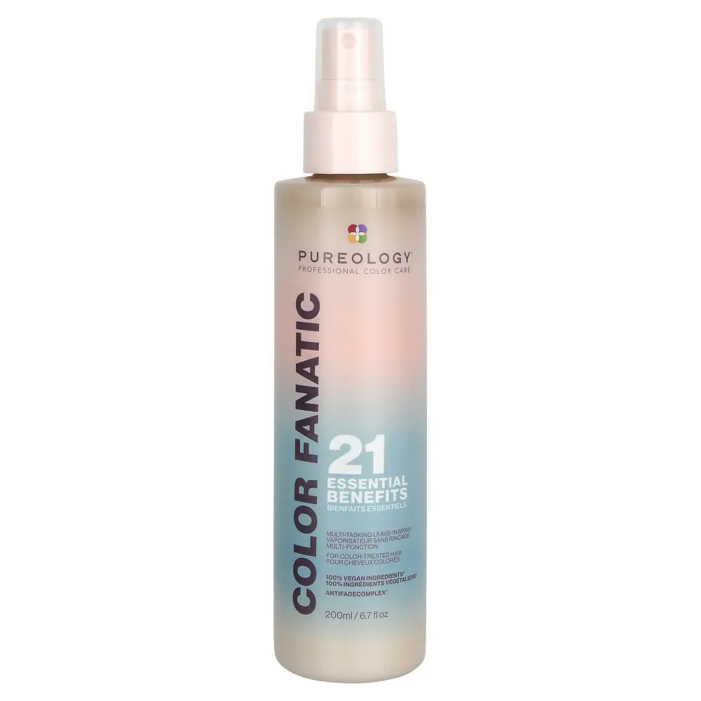 Introducing COLOUR FANATIC, a first-of-its-kind multi-tasking hair treatment spray. This leave-in primes, detangles, preserves color vibrancy, protects from heat damage up to 450° F, and adds shine from root to tip. Omega-3-rich Camelina Oil nourishes strands while Olive Oil that’s full of fatty acids helps promote healthy shine and softness, and Coconut Oil which nourishes and adds moisture.
