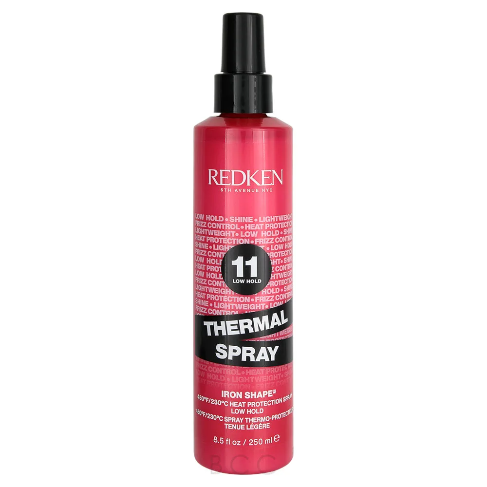 The Redken Thermal Spray 11 Low Hold Iron Shape is a lightweight thermal heat protection spray that protects hair for a silky smooth finish when heat styling. Use with flat irons and curling irons up to 450 degrees to protect hair, add shine, and reduce frizz. It features Redken’s new heat restyling technology prepares hair for easy style transition. Its ultra-lightweight formula won’t leave hair sticky offers anti-frizz protection and protects against hair breakage. The Redken Thermal Spray 11 Low Hold Iron Shape is formulated with Ceramides and Cranberry Oil. Cranberry Oil is rich in antioxidants, essential fatty acids, and vitamins. It provides hair with moisturizing, antioxidant protection, strength, smoothness, and incredible shine. Ceramides are lipids and provide hair with moisture retention, strength, UV and thermal protection, frizz control, and color retention, as well as smoothness and shine.