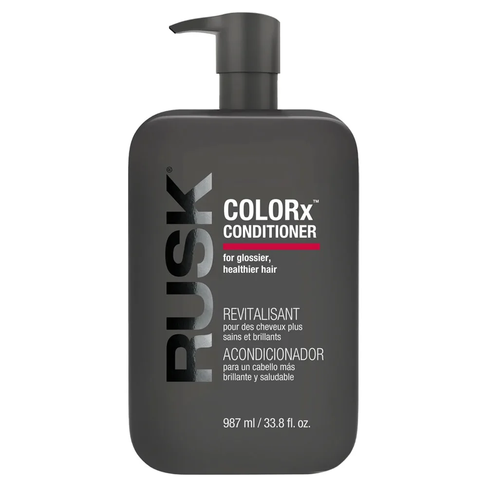 Keep your color locked in place with the Rusk COLORx Conditioner. The Rusk COLORx Conditioner helps to transform color-treated hair from dull and brittle to vibrant, shiny, and smooth! This virtually weightless conditioner helps to repair and restore hair from the inside out with Rusk’s new 3-phase approach that pinpoints, penetrates, and protects hair. Powered by a unique wheat protein that helps keep your color vibrant longer, strengthen hair, reduce breakage, and fight frizz, there really isn’t much this conditioner can’t do!