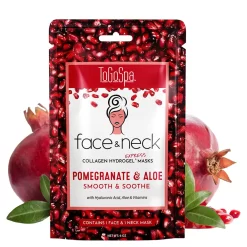 Smooth and soothe your skin with the ToGoSpa Pomegranate & Aloe FACE & Neck Mask. Formulated with vitamins, hyaluronic acid, pomegranate, and aloe to help smooth out fine lines and wrinkles, leaving your skin smooth and hydrated.