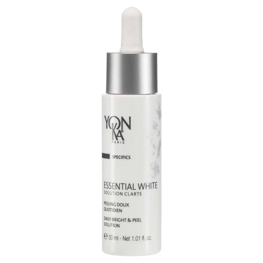 In the morning and evening, after cleansing and spraying on Lotion Yon-Ka, apply a few drops of the Specifics Essential White Solution Clarte on the face, neck and neckline. Massage in the product. Do not rinse. Next, apply the Specifics Essential White Creme Lumiere to the face, neck and neckline. Massage in. Do not rinse.