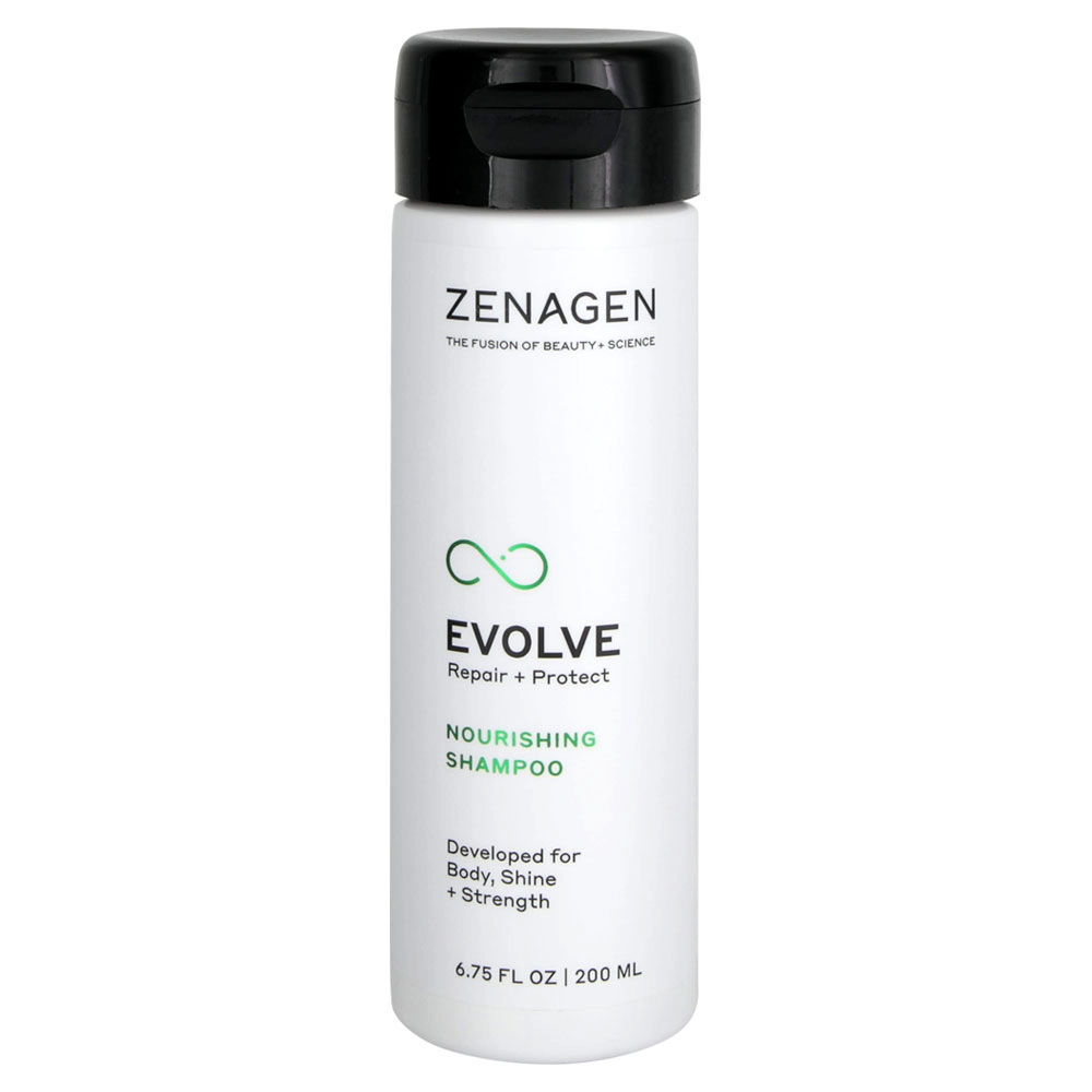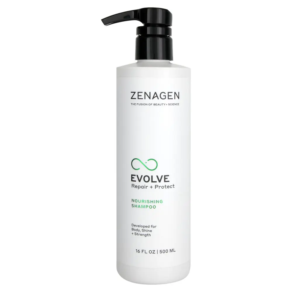 The Zenagen Evolve Nourishing Shampoo is a blend of natural ingredients and amino acids that works to seal the hair’s cuticle, making hair more resilient against dryness and breakage caused by heat styling, chemical treatments, and ongoing hair color and bleach. Leaves your hair and scalp with an optimal environment for hair growth and length.